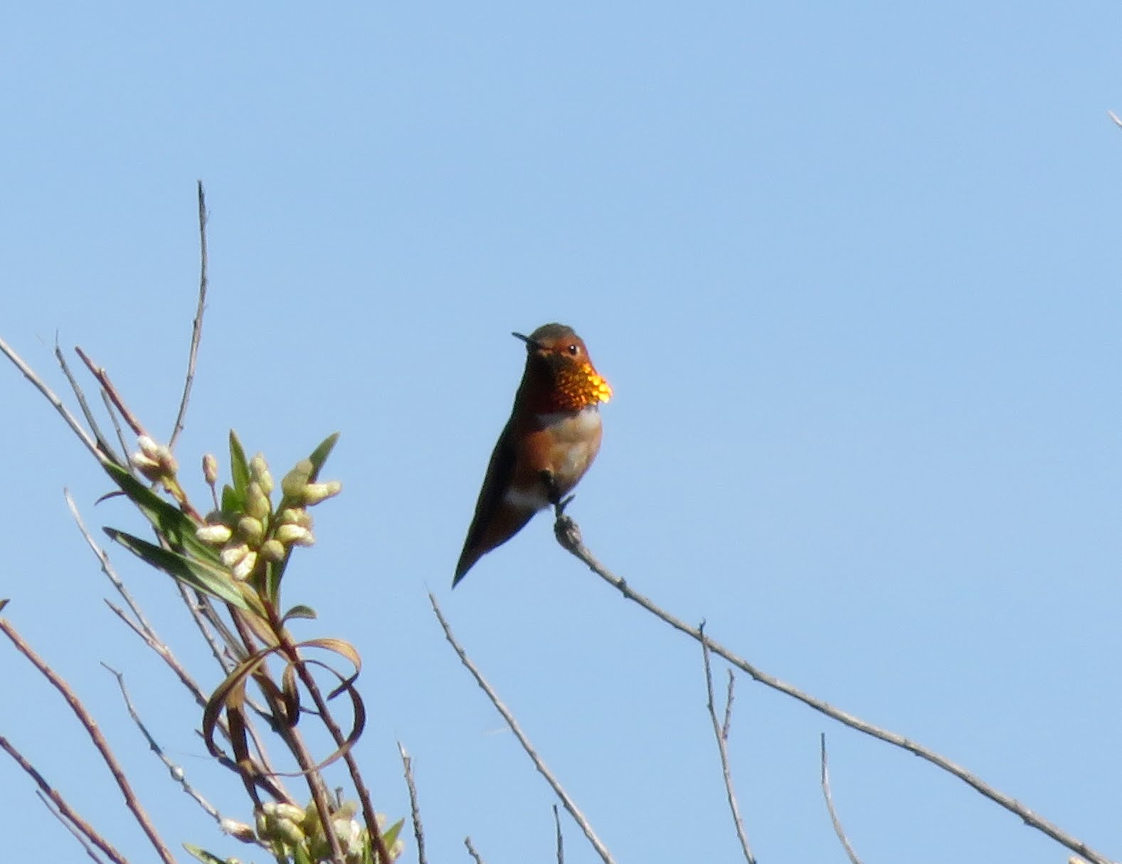 There weren't too many hummingbirds yesterday. There were a few Anna's and Allen's here and there, but there didn't seem to be as many as usual. Below are two photos of a very shiny male Allen's Hummingbird.