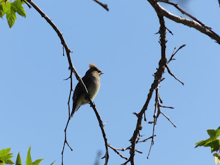 We saw quite a few Cedar Waxwings. They were singing very loudly and flying around or perching in flocks. Below is one of them.