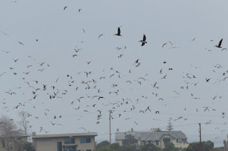 I apologize for not posting about January's bird count. I was busy and sick and just didn't have the time. I will post a few photos here of some of the highlights. Early in the morning, on the trail behind the nature center, I saw a large flock of American Goldfinches (I'd never seen them at the lagoon before) and a female Orange Bishop (a weaver finch from Africa that has become established in parts of California). We also saw a flock of Bushtits that, surprisingly, stayed still long enough for me to take a few pictures. There was an entirely black domestic Mallard swimming around the lagoon; it was very pretty. There was also a large group of Northern Pintails and a huge flock of gulls (and a few Brown Pelicans among them). The first two photos are of the American Goldfinches, the third is the Orange Bishop, the fourth is a Bushtit, the fifth is the Mallard, the sixth is the group of Northern Pintails, and the seventh is a small part of the flock of gulls (and three of the pelicans).