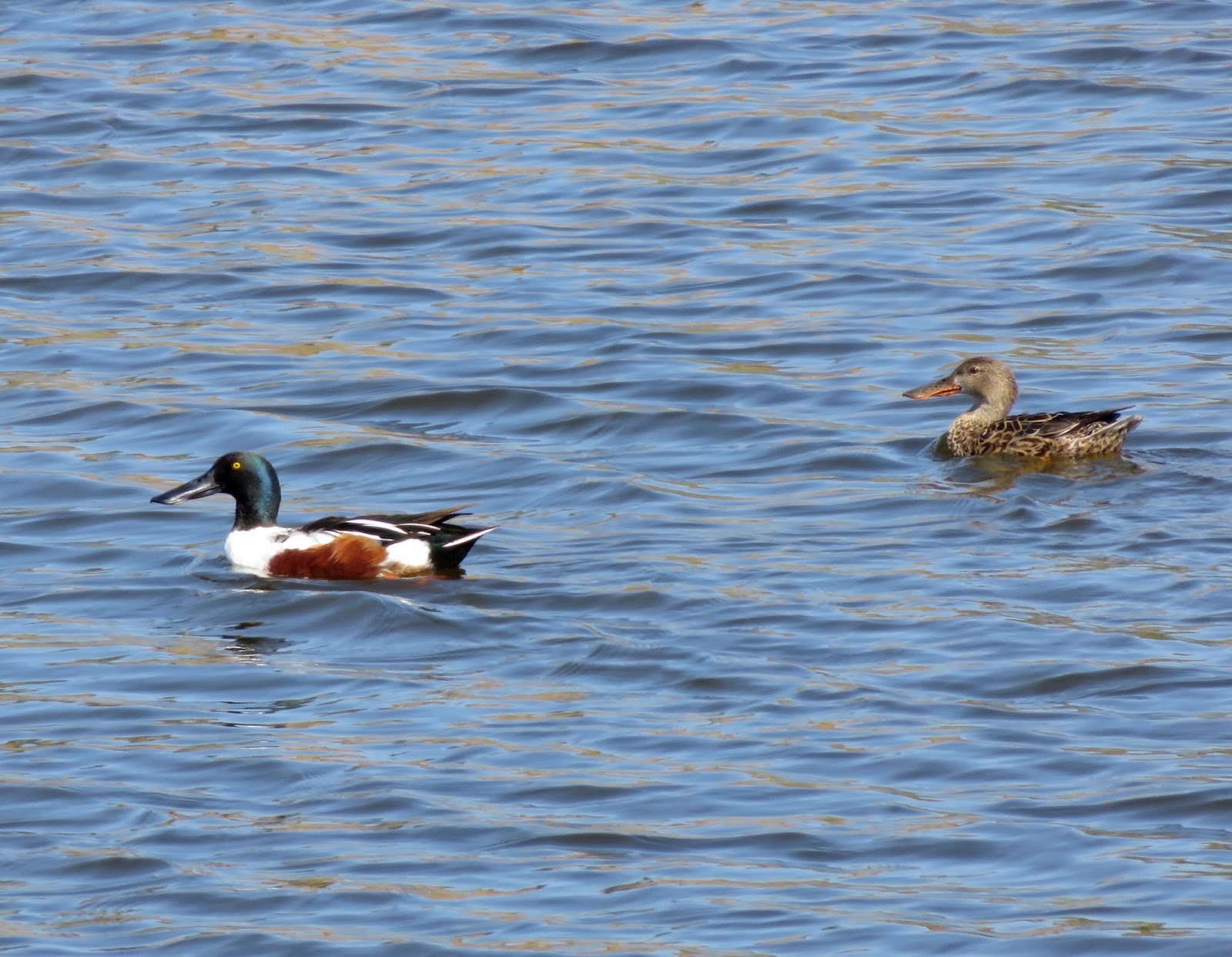 There were quite a few Northern Shovelers on the lagoon. It seemed like there was always another flock of them coming in to land. Below are two photos of the Northern Shovelers.