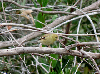 There were quite a few warblers hopping around, though not many different species. The most abundant were the Yellow-rumped Warblers (there are always huge numbers of them in the winter), followed by the Common Yellowthroats. There were also a few Orange-crowned Warblers and one Townsend's Warbler. Below is a photo of the one of the Common Yellowthroats.