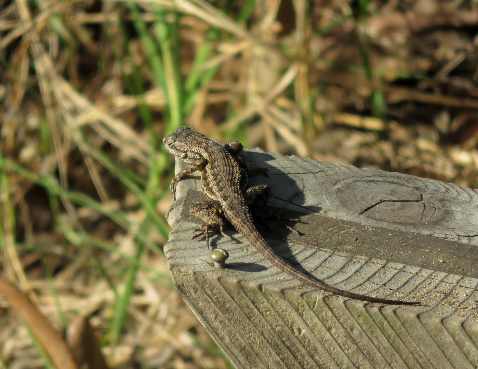 Besides the birds, there were quite a few other animals that were active as well. There were California Ground Squirrels and Western Fence-Lizards running through the bushes, and quite a few butterflies and dragonflies were flying around, enjoying the sun. Below is a Western Fence-Lizard sunning itself on a wooden post.