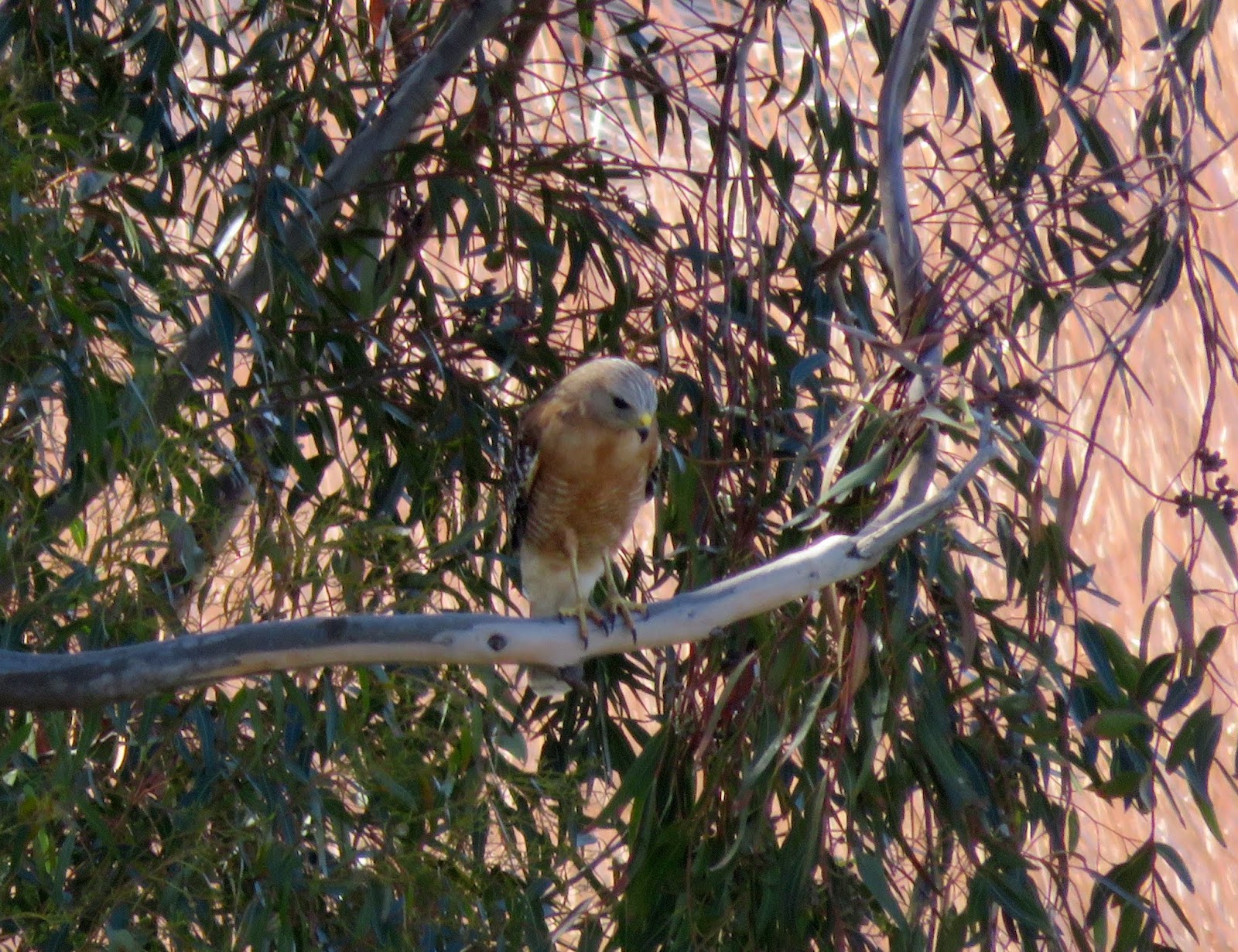 We saw a few birds of prey, including a Red-shouldered Hawk in a eucalyptus tree. Below is the hawk, scanning the ground for a possible breakfast.