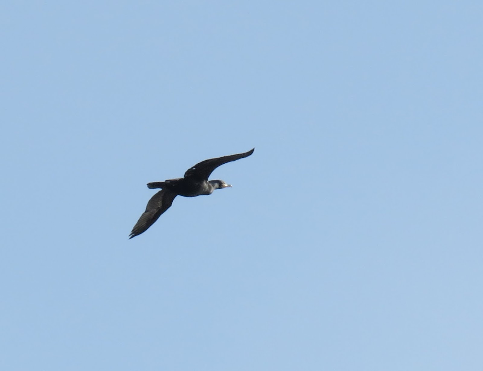 We saw a few Double-crested Cormorants here and there around the lagoon. Below is one flying over.