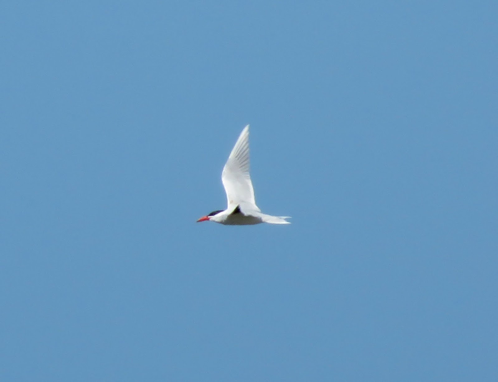 Near the end, we all saw a Caspian Tern. It was flying back and forth over the lagoon in the distance. The other terns should be showing up soon. Below is the Caspian Tern.