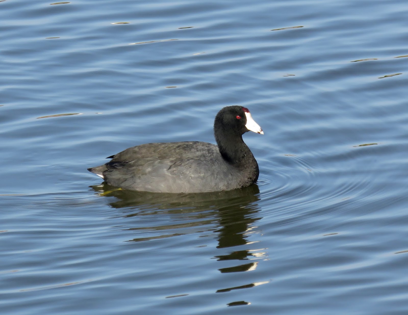 As usual, there were several American Coots and some Mallards around. Below are two photos, the first of a coot, and the second of both a coot and a male Mallard.