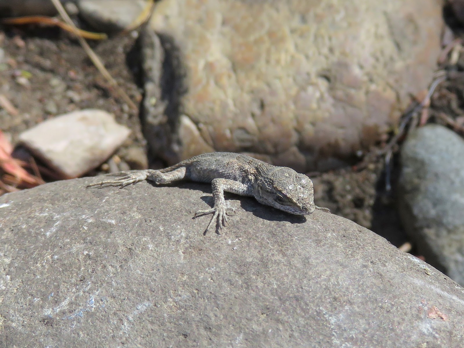 Even though I saw it yesterday, not today, here is a baby Western Fence-Lizard that fell asleep on a rock for a few seconds. It was tiny (about the length of my finger) and adorable.