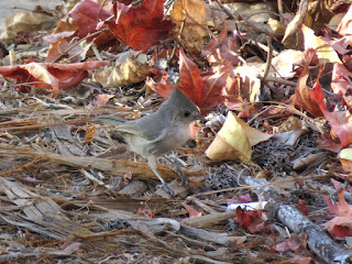 One bird that I didn't expect to see was an Oak Titmouse. They certainly live in this area, but I haven't seen one in a long time (I kind of forgot that they lived here). However, this morning, they were everywhere, and moving very quickly. Oak Titmice are found mainly in the open oak woods of California, but they're also found in part of southern Oregon and northern Baja California. They are very small, plain gray birds with short crests. They are nearly identical to Juniper Titmice, but their ranges only overlap in a small part of northeastern California. They are very cute little birds, and seeing them was probably the highlight of my morning. Below are two photos of one of the Oak Titmice.
