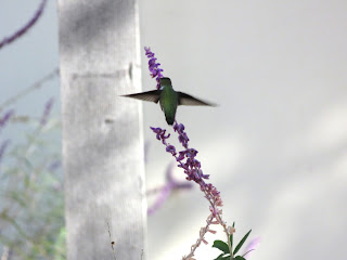 So far, I've only seen Anna's Hummingbirds at Cal Poly, and there are quite a few of them. Every tree and bush seems to have at least few hummingbirds looking for insects or visiting flowers. Below is a male Anna's Hummingbird.