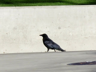Of course, there are the common "parking lot birds." House Sparrows, American Crows, and Brewer's Blackbirds are very common on campus, mainly around the restaurants. The blackbirds are more common in the morning, when there aren't so many people around. Below are a male House Sparrow, an American Crow, and a male Brewer's Blackbird.