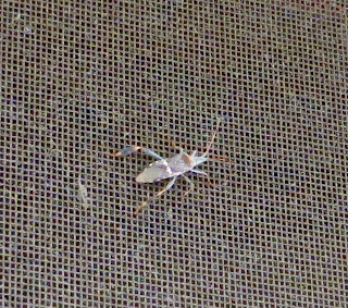 Below is a Western Leaf-footed Bug (Leptoglossus clypealis). They live in the western and central United States and feed on buds, seeds, and fruits of different plants and can be pests. (Sorry the photo is terrible.)