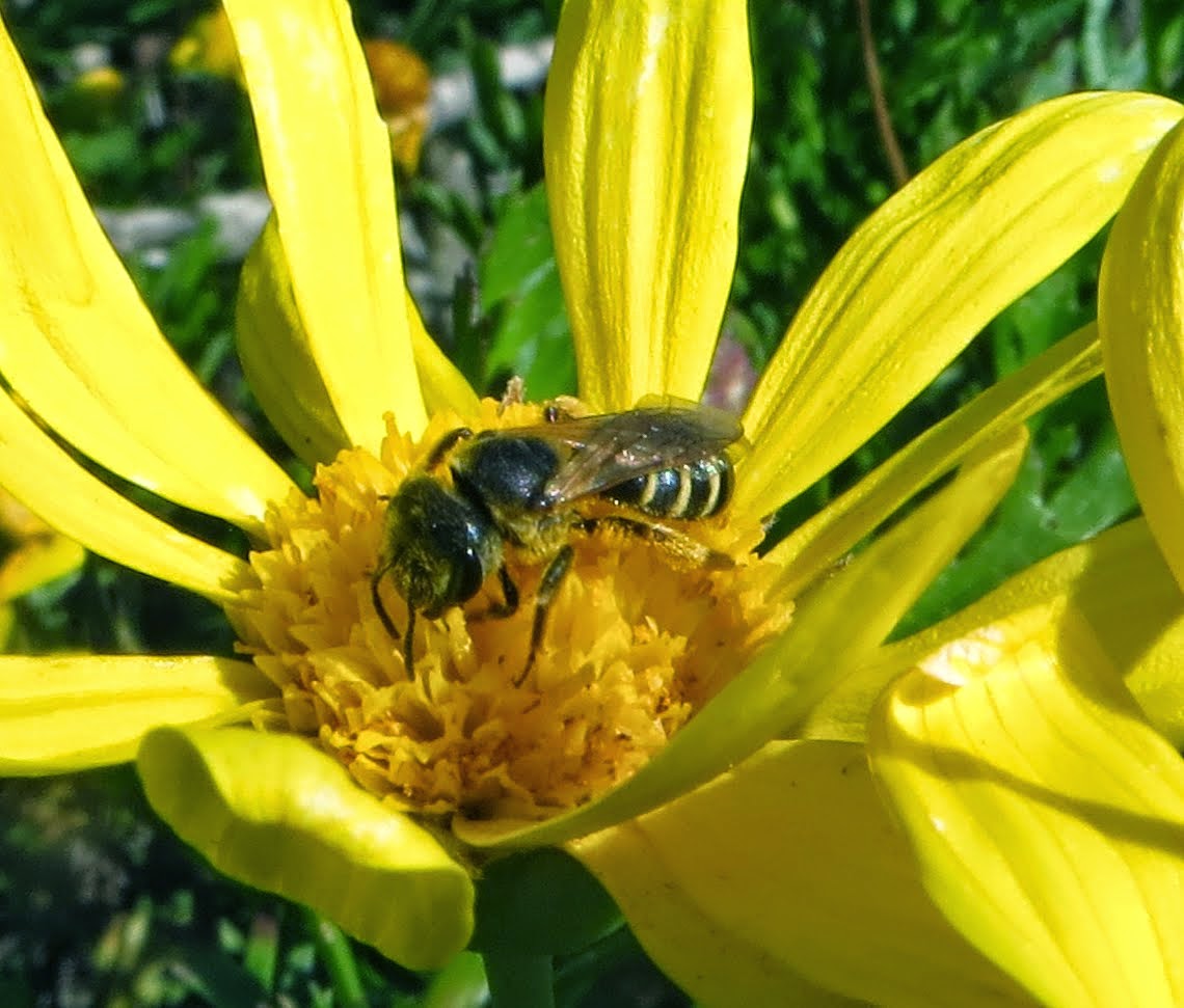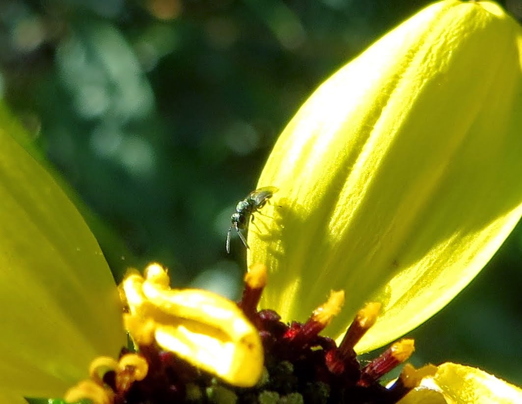 Below is another Sweat Bee of unknown species (there are many, many species of sweat bees). The one below is a particularly tiny species, about the same size as a Braconid Wasp (see above).
