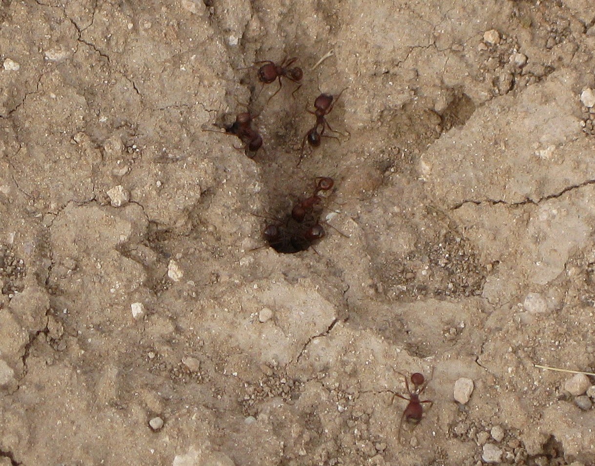 Below are California harvester ants (Pogonomyrmex californicus). They are large, native, desert ants found in the southwestern United States. Oddly, I saw these ones in Texas, not California.